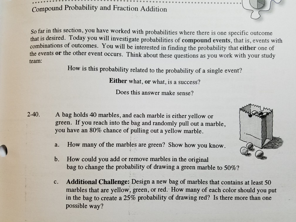 Marbles in a bag probabilitty at least one.