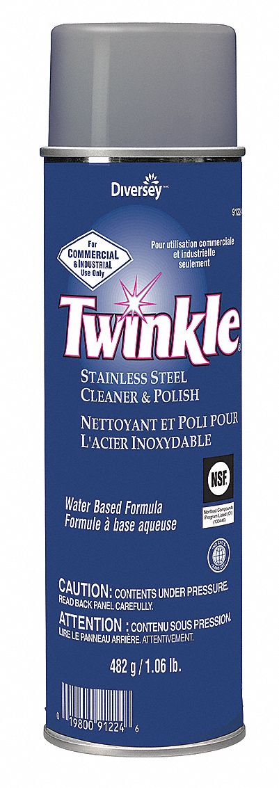 Twinkle stainless steel cleaner polish removes grease dirt fingerprints smudges and water marks.