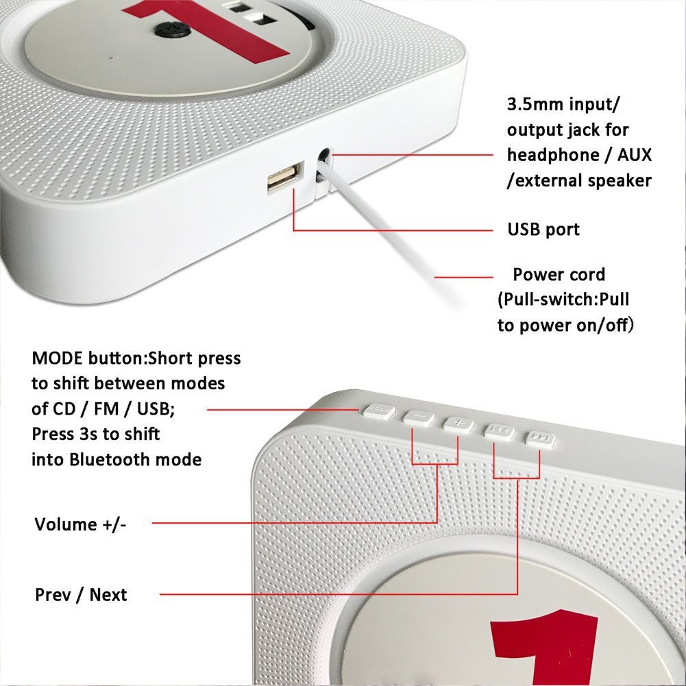 Wall mount cd player usb mp3 bluetooth fm radio kc 809 remote control white 9 5 9 0 9 6 3.